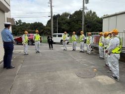 交通安全教育と交通安全啓発活動を行いました。令和2年10月に蟹江警察署の方にお越しいただき、当社従業員への交通安全教育と通行車等への啓発活動を行いました。 |