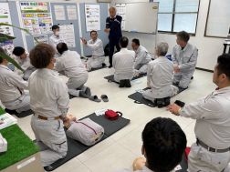 秋の交通安全啓発活動、交通安全講習及び応急処置実習を実施しました。令和6年10月24日に、蟹江警察署の方にご来訪いただき、交通安全啓発活動を行いました。当社従業員を対象とした交通安全講習も実施されました。 |